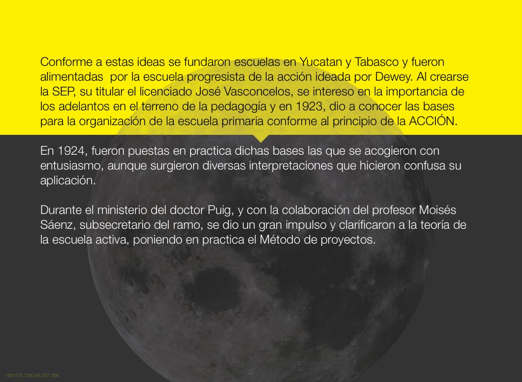 Conforme a estas ideas se fundaron escuelas en Yucatan y Tabasco y fueron alimentadas por la escuela progresista de la acción ideada por Dewey. Al crearse la SEP, su titular el licenciado José Vasconcelos, se intereso en la importancia de los adelantos en el terreno de la pedagogía y en 1923, dio a conocer las bases para la organización de la escuela primaria conforme al principio de la ACCIÓN.
