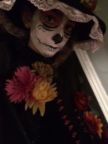 Catrina dolls are skeletons, so the makeup was more like face paint. The makeup is really specific but also creative, so it took us 2 hours to do!