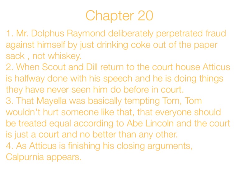4. As Atticus is finishing his closing arguments, Calpurnia appears.