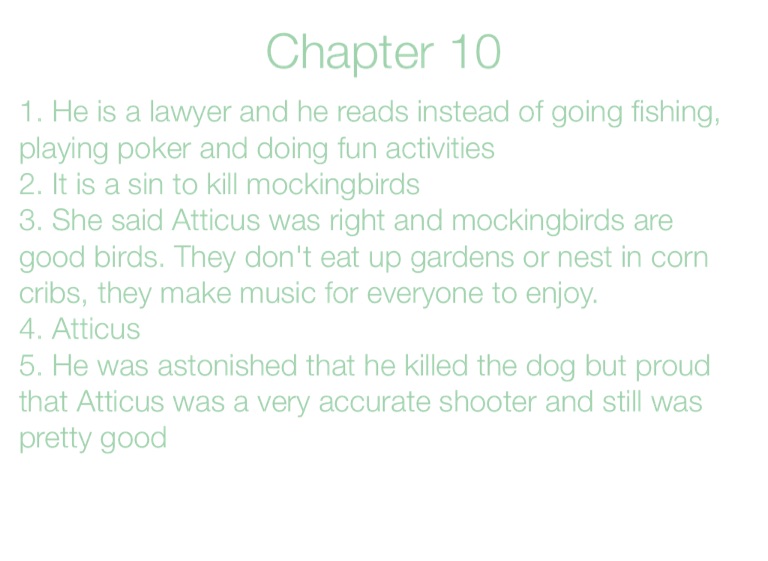 3. She said Atticus was right and mockingbirds are good birds. They don't eat up gardens or nest in corn cribs, they make music for everyone to enjoy.