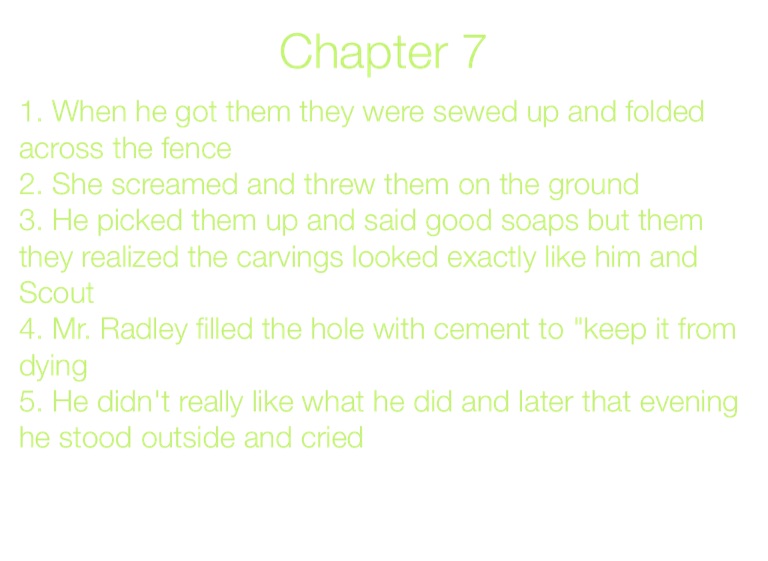 4. Mr. Radley filled the hole with cement to "keep it from dying