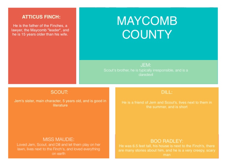 He is the father of the Finches, a lawyer, the Maycomb "leader", and he is 15 years older than his wife.