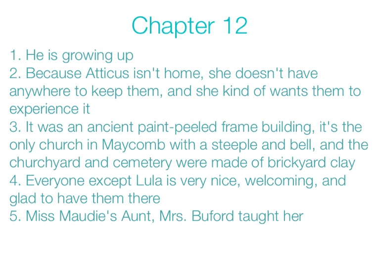 2. Because Atticus isn't home, she doesn't have anywhere to keep them, and she kind of wants them to experience it