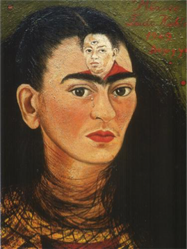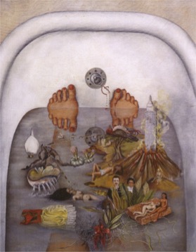 Frida Kahlo’s life was not and easy ride. With events like the Revolution polio, a fatal accident resulting in a grand total of 33 surgeries, an unsteady marriage plus infertility, Kahlo’s life was filled with devouring feelings of tragedy. She took her negative feelings and created art. The choice of style, though possibly based solely off of preference, contributes the the meanings behind each piece.