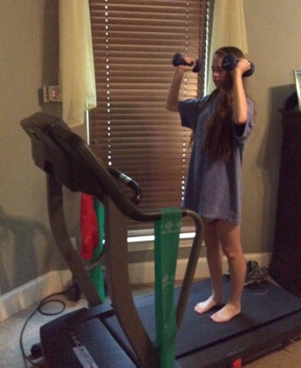 Exercising causes the body to maintain homeostasis by lactate acid to the muscles. Over time, this also signals to the brain that it is time to stop exercising so that the muscles can get just the energy they need. On the left you see rebecca exercising.