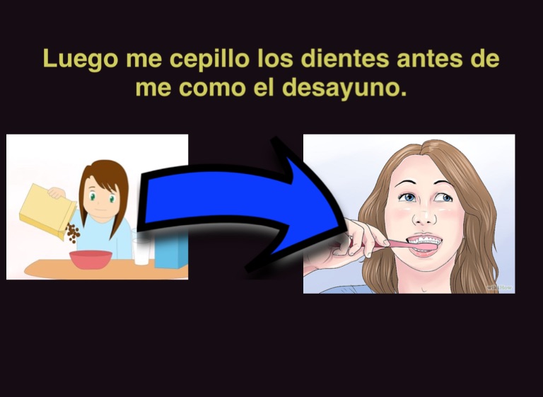 Luego me cepillo los dientes antes de me como el desayuno.