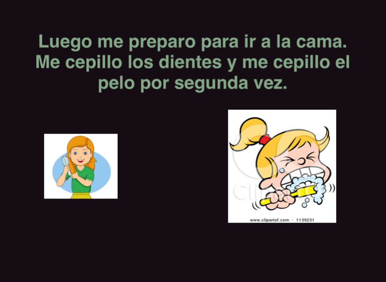 Luego me preparo para ir a la cama. Me cepillo los dientes y me cepillo el pelo por segunda vez.