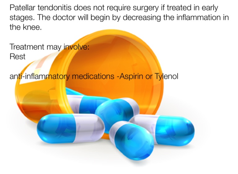 Patellar tendonitis does not require surgery if treated in early stages. The doctor will begin by decreasing the inflammation in the knee.