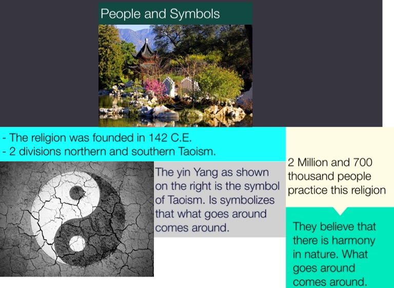 The yin Yang as shown on the right is the symbol of Taoism. Is symbolizes that what goes around comes around.