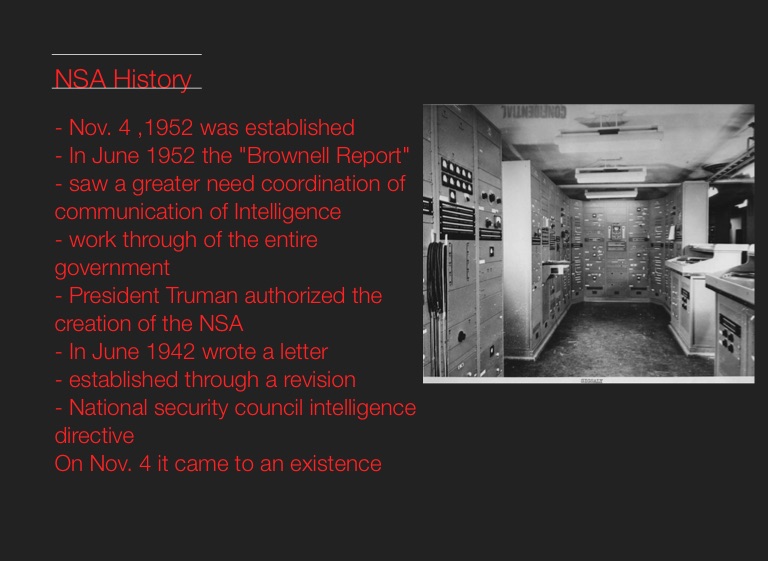 - President Truman authorized the creation of the NSA