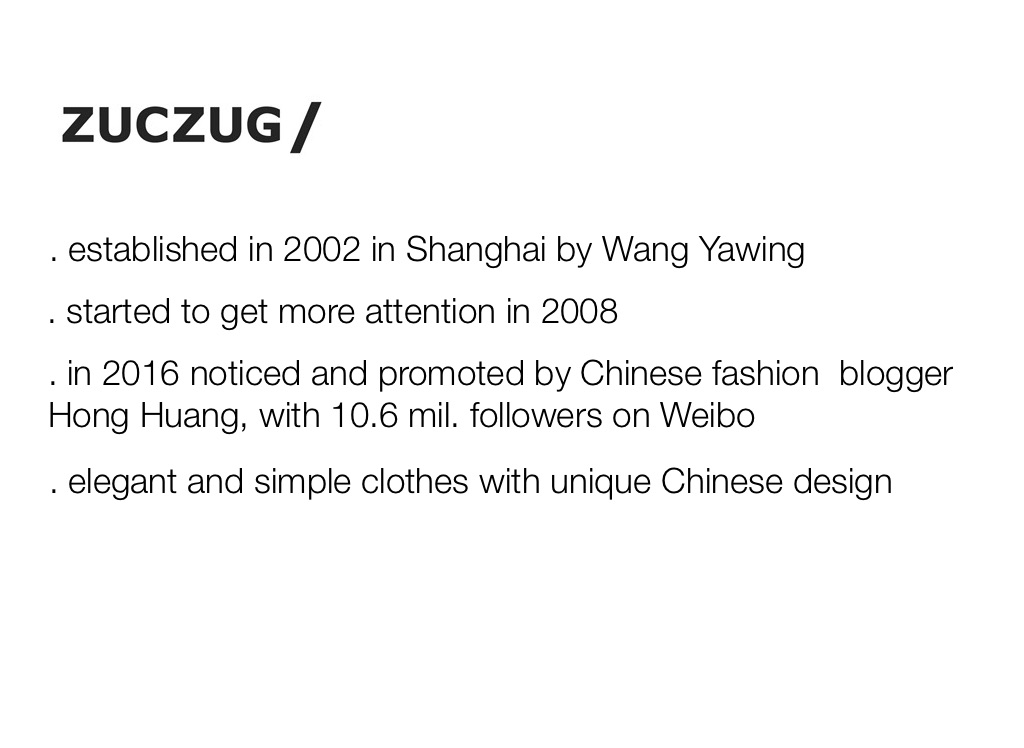 . in 2016 noticed and promoted by Chinese fashion blogger Hong Huang, with 10.6 mil. followers on Weibo