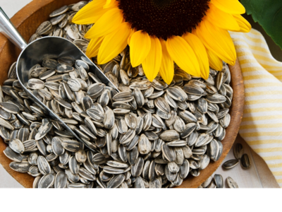 Sunflowers make a lot of seeds. The seeds are good to eat.