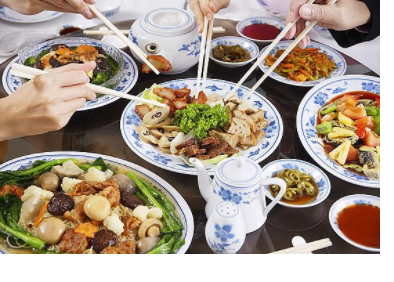 Chinese people usually order " family style" food. This is when they give the family a big bowl and they eat from there. They also go out a lot in the night to go eat. Chinese people love fresh food and fresh vegetables. They love to grow their own food and be as healthy with their food as possible. They show a lot of respect to their elders. Chinese people use chopsticks instead of forks and spoons because it represents the wisdom of Chinese ancient people. China is a country with great food and great traditions that people treasure.