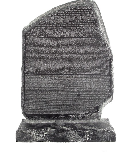 The Rosetta Stone is a stone also know as a rock stele. A stele is a stone or wooden slab with writing or patterns on it. It is generally used for showing a memorial for the dead. It could also be used for government notices or a teritorial marks. The Rosetta stele is from ancient Egypt and has two languages written on it Egyptian and Greek, using three scripts hieroglyphics, demotic and Greek.