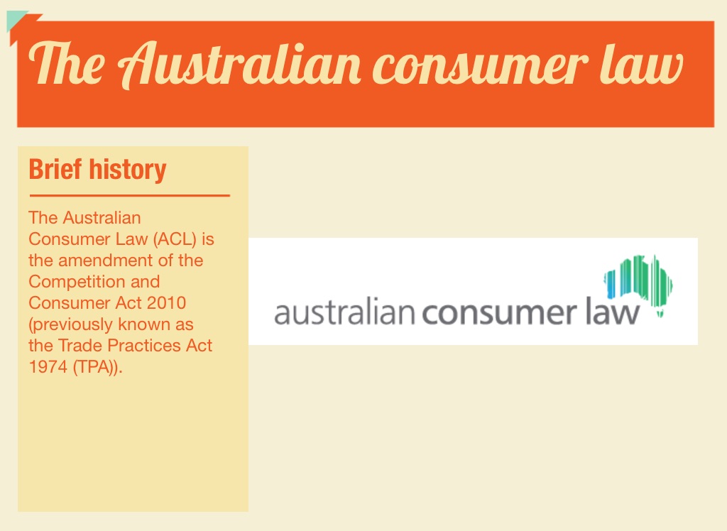 The Australian Consumer Law (ACL) is the amendment of the Competition and Consumer Act 2010 (previously known as the Trade Practices Act 1974 (TPA)).