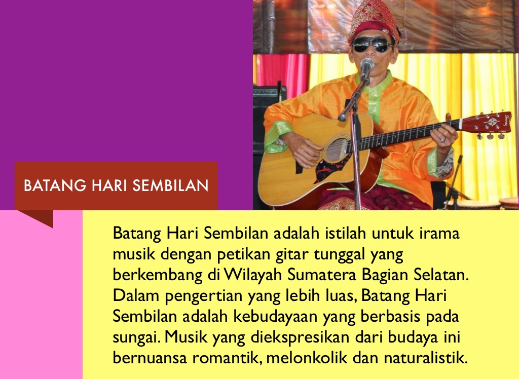 Batang Hari Sembilan adalah istilah untuk irama musik dengan petikan gitar tunggal yang berkembang di Wilayah Sumatera Bagian Selatan. Dalam pengertian yang lebih luas, Batang Hari Sembilan adalah kebudayaan yang berbasis pada sungai. Musik yang diekspresikan dari budaya ini bernuansa romantik, melonkolik dan naturalistik.