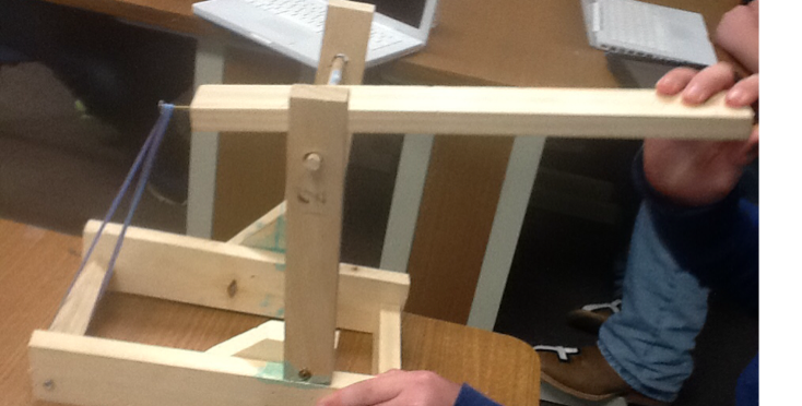 Our catapult uses tension from rubber bands to propel the golf ball.