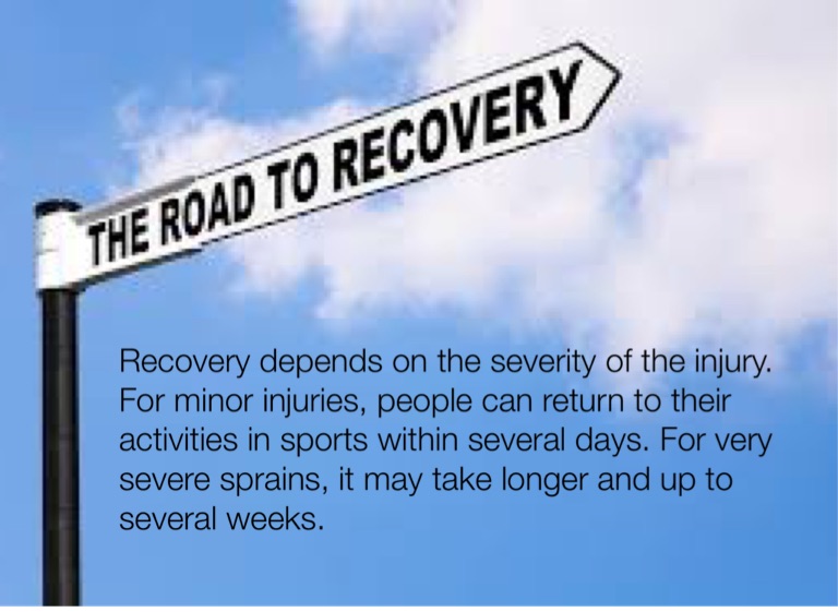 Recovery depends on the severity of the injury. For minor injuries, people can return to their activities in sports within several days. For very severe sprains, it may take longer and up to several weeks.