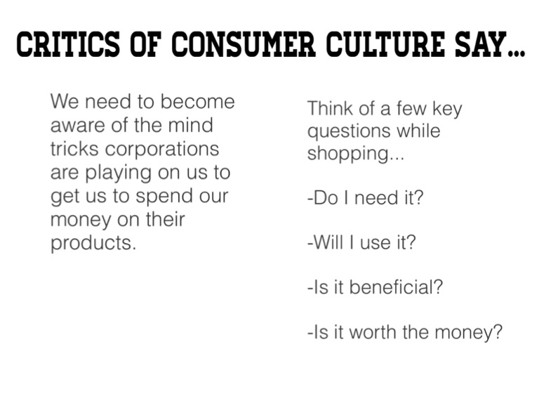 Critics of consumer culture say...