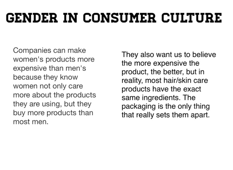 Companies can make women's products more expensive than men's because they know women not only care more about the products they are using, but they buy more products than most men.