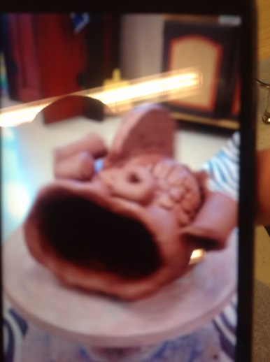 You will make two balls of clay and then put your thum on the inside and pinch it to the size you want.