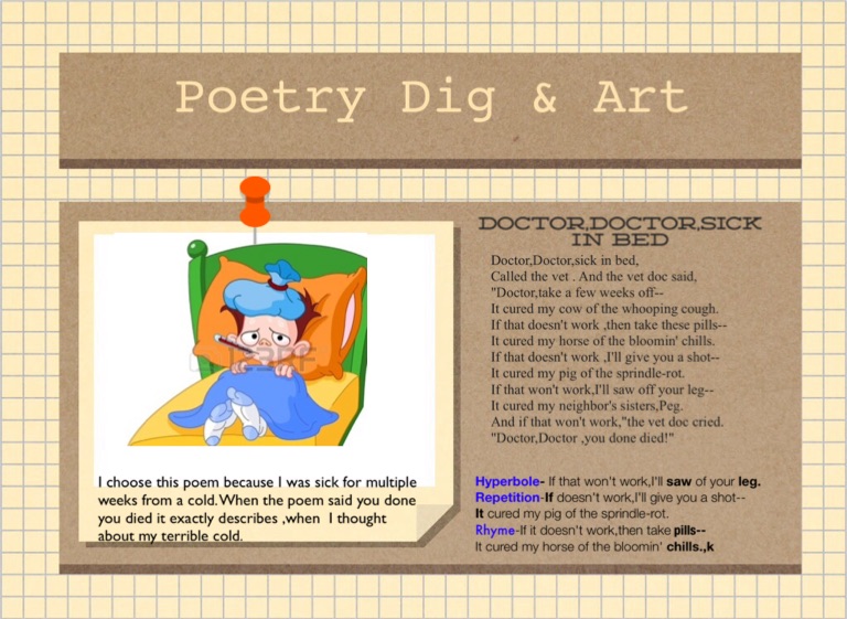 I choose this poem because I was sick for multiple weeks from a cold. When the poem said you done you died it exactly describes ,when I thought about my terrible cold.