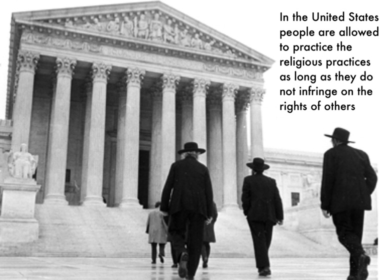 In the United States people are allowed to practice the religious practices as long as they do not infringe on the rights of others