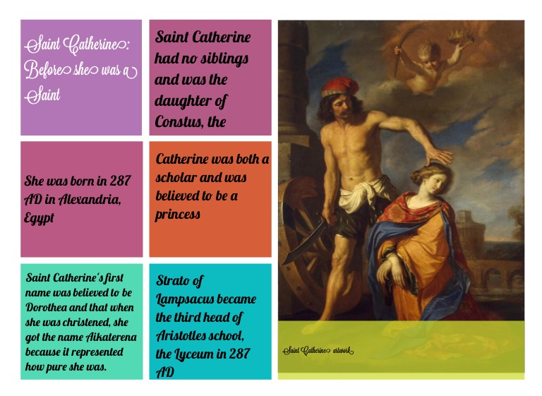 Saint Catherine had no siblings and was the daughter of Constus, the Alexadrian Mayor