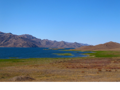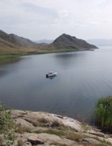 Lake Zaysan is a freshwater lake located in the eastern area. It was 60 miles long, 20 miles wide, and 26 miles deep, with a surface of 718 square miles. It's level was raised 20 feet when it Bacall part of Baqtyrma (bakhtarma) Resivore downstream.