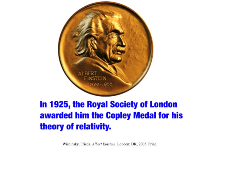 In 1925, the Royal Society of London awarded him the Copley Medal for his theory of relativity.