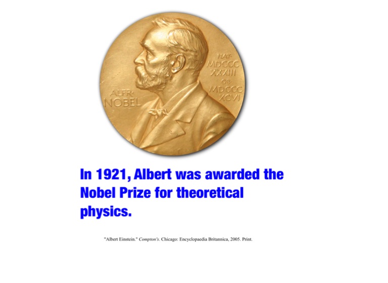 In 1921, Albert was awarded the Nobel Prize for theoretical physics.