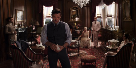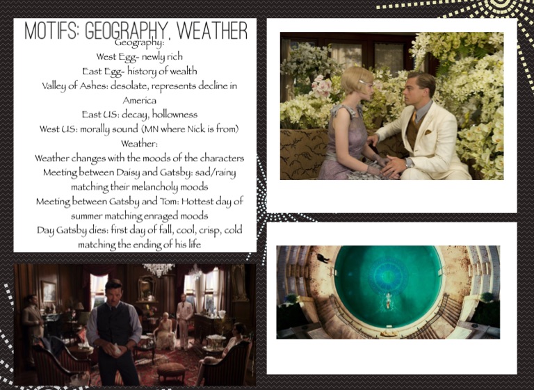 Meeting between Daisy and Gatsby: sad/rainy matching their melancholy moods