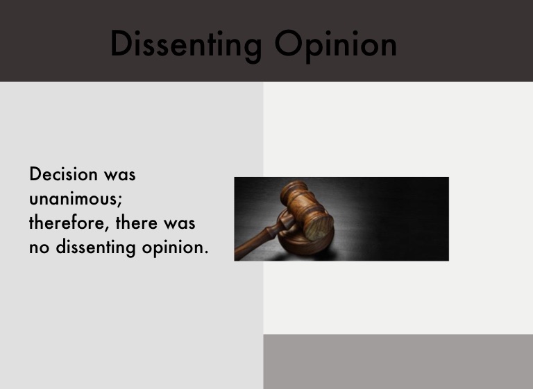 Decision was unanimous; therefore, there was no dissenting opinion.