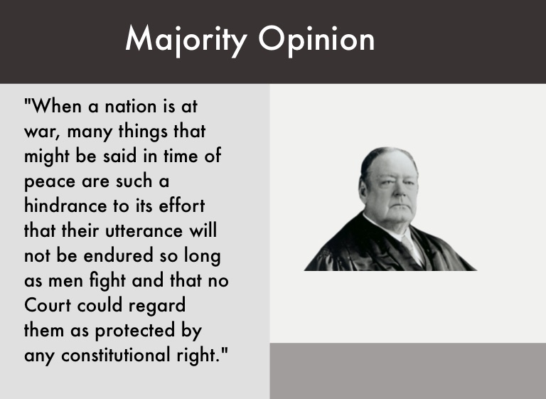 "When a nation is at war, many things that might be said in time of peace are such a hindrance to its effort that their utterance will not be endured so long as men fight and that no Court could regard them as protected by any constitutional right."