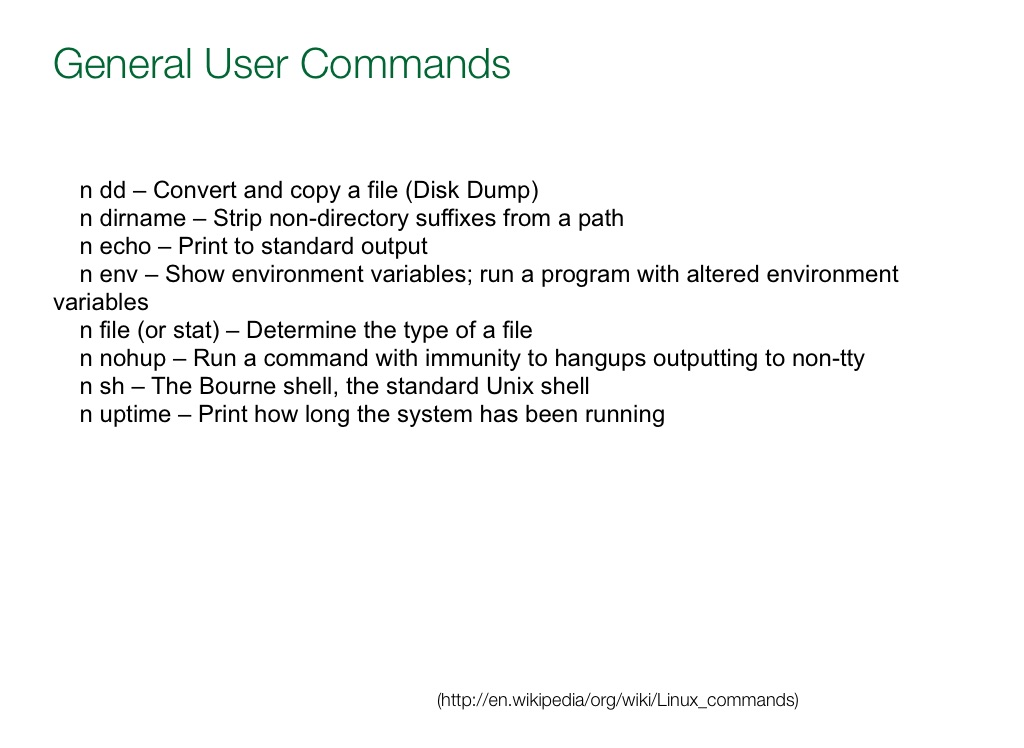 (http://en.wikipedia/org/wiki/Linux_commands)
