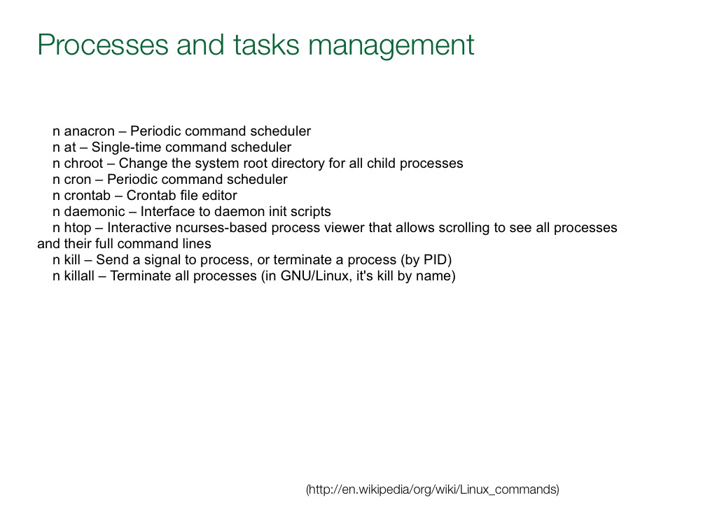 (http://en.wikipedia/org/wiki/Linux_commands)