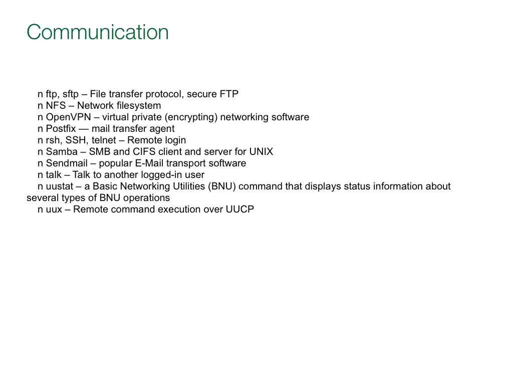 n rsh, SSH, telnet – Remote login