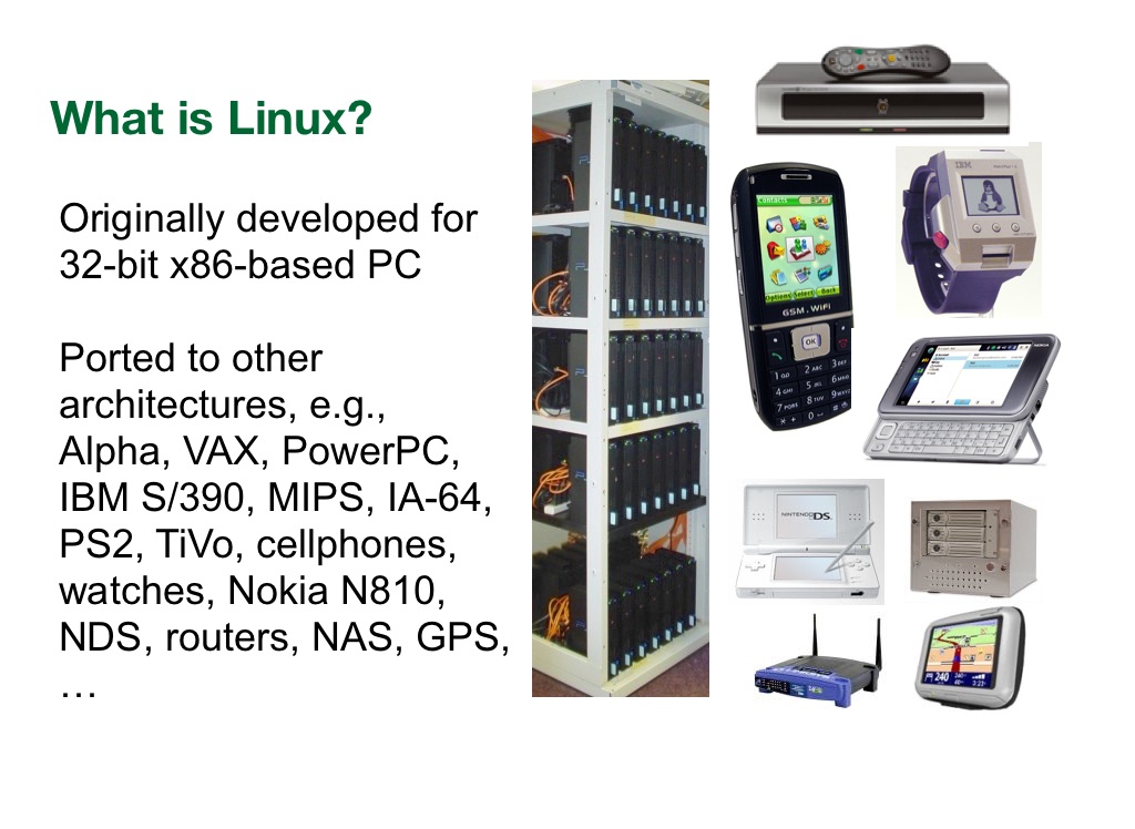 Alpha, VAX, PowerPC, IBM S/390, MIPS, IA-64, PS2, TiVo, cellphones, watches, Nokia N810, NDS, routers, NAS, GPS, …