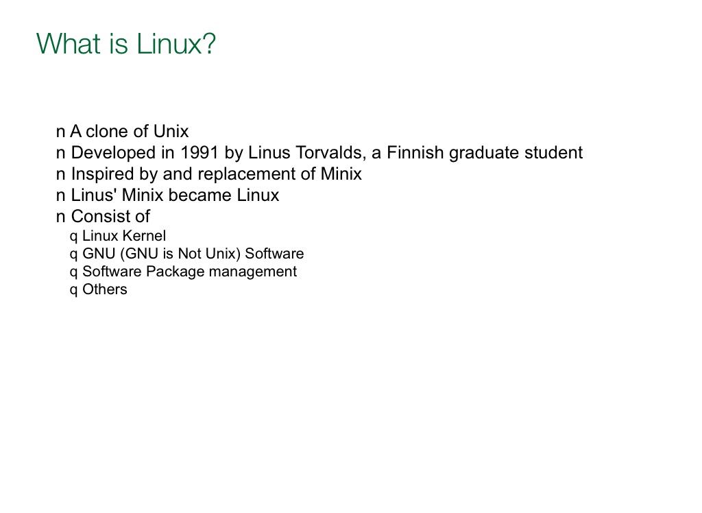 n Developed in 1991 by Linus Torvalds, a Finnish graduate student