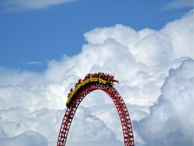 The roller coaster is changing from potential to kinetic energy from starting to go down the hill.