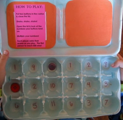 You are going to put the buttons in a random spot, and then close the lid. Shake it up! And then open it and whatever fraction it lands on, that is the one you'll turn into a decimal.