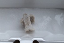 Day 17: (Weight not measured because I was absent and food scale was taken home). Hard but a very slight hint of squishiness. Color was darker and it shrunk a little bit. The salt was hard in the middle like a circle-shaped block, but other then that, it was powdery and soft like before.