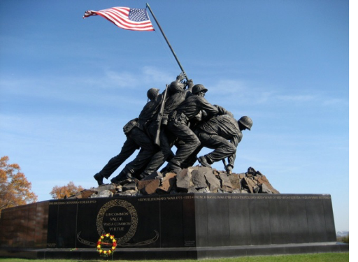 The Marine corps war memorial is honoring marines for serving our country in war and fight ing along side our armed forces .