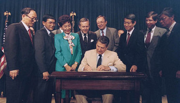President Reagan signed the Civil Liberties Act of 1988 which was an official apology from the U.S. Government. It also gave each surviving internee $20,000.