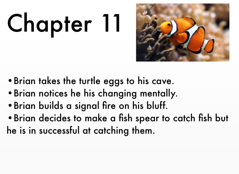 •Brian decides to make a fish spear to catch fish but he is in successful at catching them.