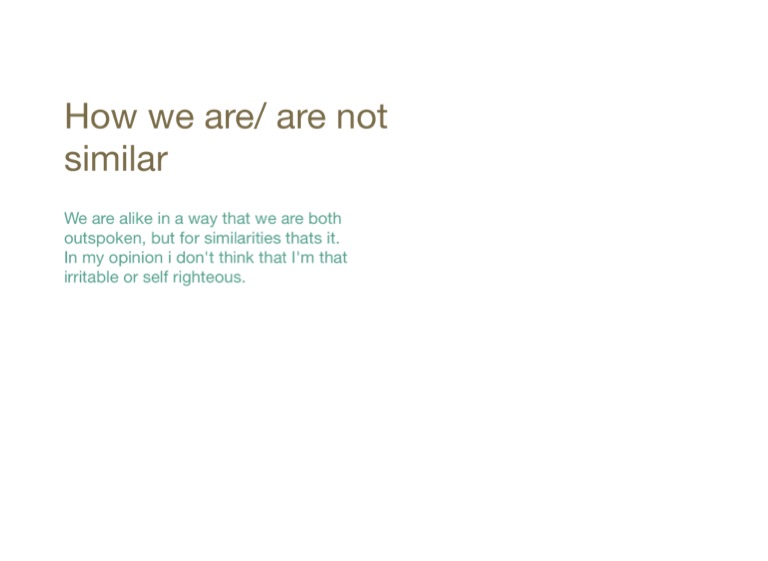 We are alike in a way that we are both outspoken, but for similarities thats it. In my opinion i don't think that I'm that irritable or self righteous.