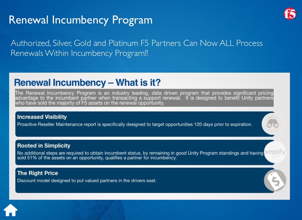 Authorized, Silver, Gold and Platinum F5 Partners Can Now ALL Process Renewals Within Incumbency Program!!