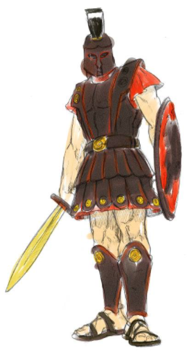 The statues of Ares consist of him wearing a helmet and a shield (Greek sculptures).