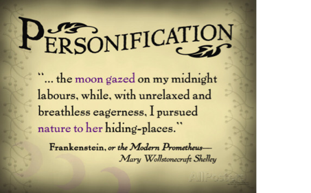 A figure of speech which gives humans qualities to animals and things that aren't alive.