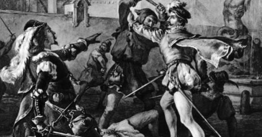 The beginning of Romeo and Juliet starts off with a violent street fight between the two houses, the Montagues and the Capulets. They are fighting because of an ancient grudge between the two houses that has been going on for years.